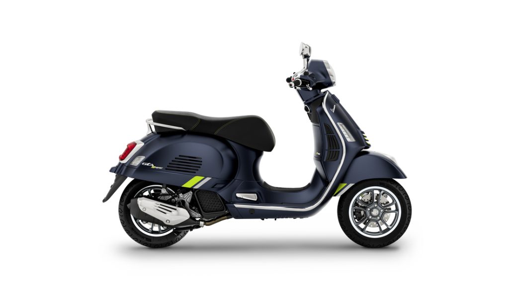 A distinctive and winning look, typical of a Gts, combines with unique appeal and pure technology. The Vespa Gts SuperTech makes a statement with intense colours interpreted through glossy and matt liveries that showcase the scooter’s high-tech, sophisticated design. Chrome lines and fluorescent details emphasise its futuristic soul, while the black seat with contrasting stitching adds an extra touch of elegance.